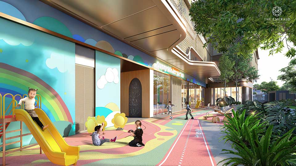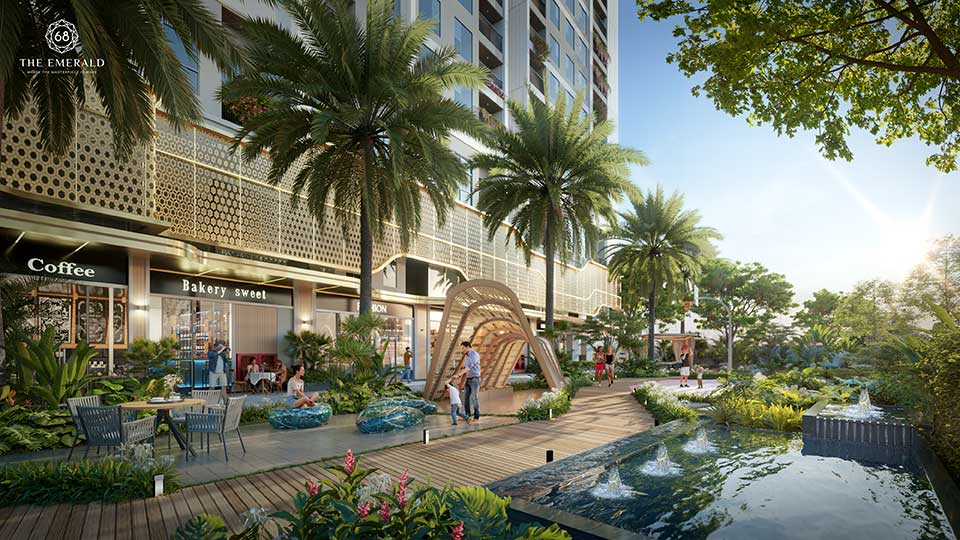Khối đế Emerald 68 được thiết kế như một trung tâm thương mại thu nhỏ, mang đến cho cư dân một không gian mua sắm,
